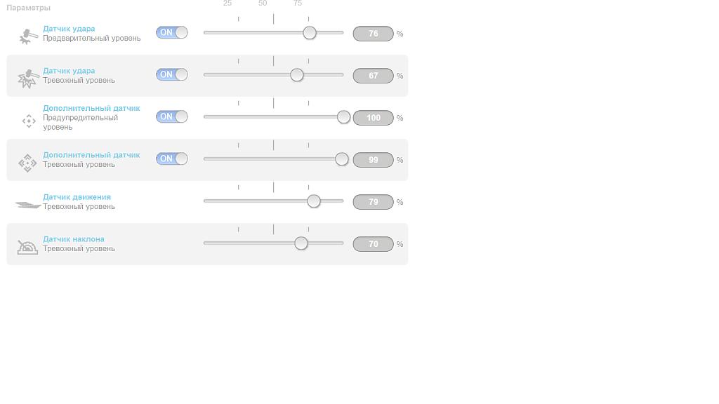 Вот мои настройки. Раз в два месяца есть ложняки, но чувствительность очень слабая и для сработки нужно очень сильно ударить.
