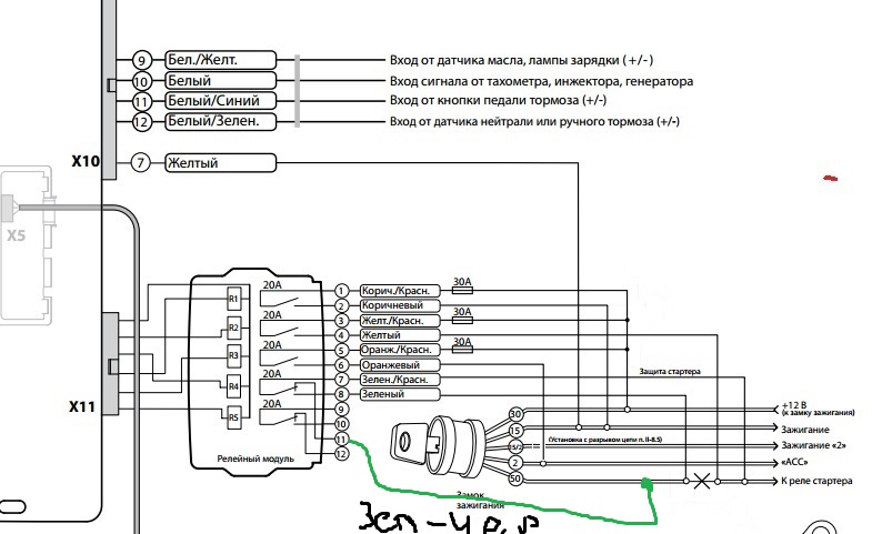 желтый - от пандоры - выход на стартер, вам это о чем то говорит?