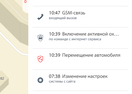 На компьютере в истории событий появилось событие "Перемещение автомобиля" и значёк в виде щита с пиктограммой - видимо информация о том, что контроль перемещения включён.