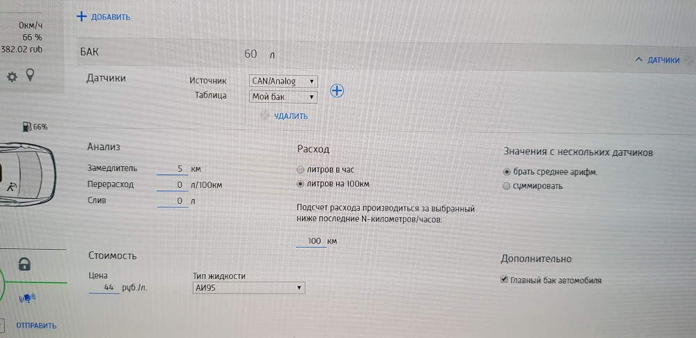 Как-то просто у вас все получается... Вы теоретик или практик? Два года не могу добиться отображения (адекватного) топлива в литрах. Каких только таблиц не нарисовал... На скриншоте 66л - это по кану. "По бакам" показывает - 0.