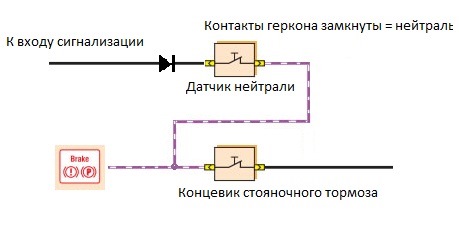 Но есть решение (конструктивная критика приветствуется:-) ) Нужно для МКПП изготовить датчик нейтрали(к примеру на основе геркона) и завести через него ручник(нейтраль), т.е. схема примерно такая Вложение 1479, а также в настройках Пандоры выставить АКПП вместо МКПП и ручник (нейтраль) аналогом соответственно, единственное входов аналоговых там немного у вас судя по схеме, нужно на какой нибудь свободный назначить ручник(нейтраль). По гуглите на драйв2 может найдете и на свою машину кто уже делал. Что получаем в итоге: АЗ и ДЗ как на машине с АКПП т.е. сколько угодно можете открывать-закрывать двери, если рычаг МКПП в положении нейтрали, то контакты геркона замкнуты - Пандора это видит - запуск разрешен, если включена передача, соответственно контакты разомкнуты дистанционный запуск невозможен.