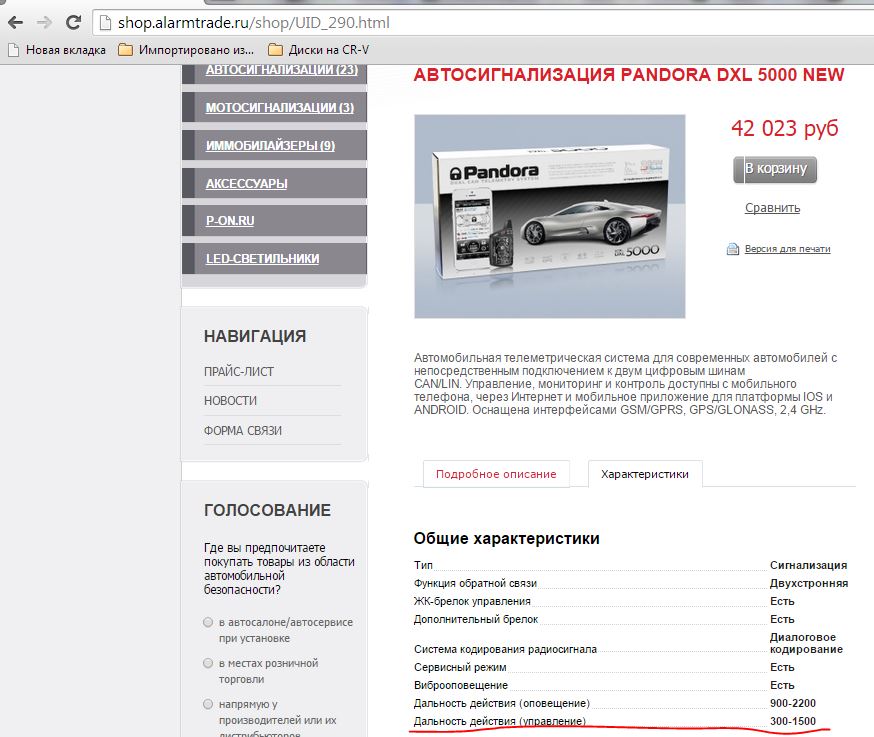 Машина CR-V 2.4. Сигнализация "DXL 5000 new". RF-модуль - на лобовом около зеркала ЗВ антенной вниз. Меня не устраивает Дальность "Брелок-машина". (На работе машина стоит за 1000 м, почти прямая видимость, с GSM там тоже проблемы. Не могу завести дистанционно со второго этажа! :-( . Раньше на другой машине был Старлайн за 4950 р - заводил без проблем!) Проводил замер дальности в идеальных условиях - летом за городом на полевой дороге, в прямой видимости (абсолютно никаких помех и преград): "DXL 5000 new" - дальность всего 800 м (срабатывание 1 раз из 10). Там же сразу сравнивал со Старлайном, у которого заявлена дальность 800 м - реально ВЫШЛО 2 км!!! В официальном интернет магазине АТ (http://shop.alarmtrade.ru/shop/UID_290.html) у "DXL 5000 new" указана "Дальность действия (управление) - 300-1500 м." Вложение 1026 Я "грешил" на брелок, так как, кроме малой дальности он еще и "жрал" батарейки. Щелочных Дюрасел хватало на 1 месяц. (на Старлайне мне хватало на 4 месяца! при хорошей дальности). Брелок мне, в общем, (в представительстве без особых проблем) поменяли, но уговаривали, что 800 м - это уже "круто" и говорили, что ни ОДИН производитель не указывает дальность, чтобы не было лишних претензий! :-[ (В Пандоре в инструкции, действительно, нет конкретных дальностей "туда-сюда", но есть "Дальность связи с процессорным блоком свыше 1800 м в зоне видимости", а у Старлайна в инструкции есть конкретные честные цифры "и туда и оттуда", которые на практике оказываются даже значительно лучше) и предупреждали, что лучше не станет. И действительно, лучше не стало! :-( Вопросы: Как у кого с дальностью "DXL 5000 new"? Кто-нибудь замерял дальность в идеальных условиях? Какие результаты? Пробовать менять еще RF-модуль? Или АТ врет про "Дальность действия (управление) - 300-1500 м."? Или 800 м это предел для "навороченной" дорогой сигнализации? :-( |